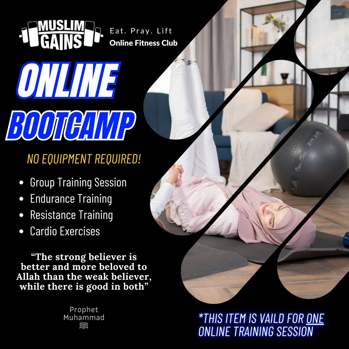 Bismillah! Let’s embark on a transformative journey with MuslimGains virtual Online Group BOOTCAMP sessions!